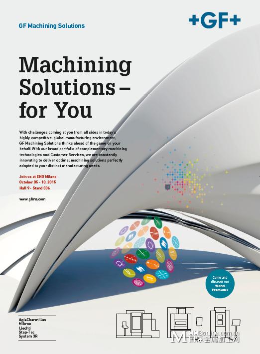 在9号馆C06展台,EMO的参观者将感受到GF的中心主题——为您定制的加工方案。这包括机床的首次展出、客户服务、由GF加工方案所带来的最有价值的现场加工演示,其涵盖了GF加工方案广阔的生产技术、专业知识、为诸多工业领域客户提升生产率的服务。 我们的技术包括铣削、放电加工、机翼加工解决方案、激光纹理加工、自动化、夹具和主轴,连同客户服务,这使得GF加工方案成为世界上提供工模具和精密零件的解决方案领先供应商。 在EMO展会上,我们将首次展出的包括Mikron MILL P 800U铣削加工中心、CUT E 350慢走丝线切割机床、提供激光纹理加工解决方案的系列产品LASER 400,另外还有为铣削、电加工和激光技术提供沟通服务的客户服务最新rConnect中心交流平台。 另外,展台将突出GF加工方案在工模具行业、高价值零件制造行业和高附加值客户服务等领域的深加工专业知识和在重点领域比如航空航天制造领域的专业解决方案。不仅如此,我们与全球增材制造的领军企业EOS, Kralling德国战略合作的第一个方案也将展出。 无论客户的关注点在降低成本、开拓新的业务领域或者是从同行中寻求启发,GF加工方案在EMO2015的展台都会让参观者拓展思路、激发灵感。参观者们也有机会接触到最为广泛的加工解决方案,以及加工应用和生产过程专业知识。 更多关于GF加工方案在EMO2015展会的消息,请访问我们的网站www.gfms.com/EMO2015。我们的最新消息将随时更新。