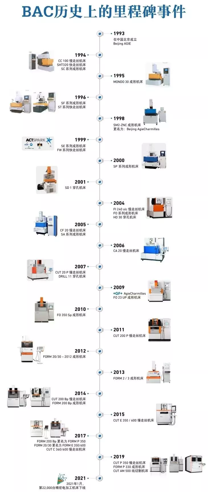 北京阿奇夏米尔工业电子有限公司(BAC)在中国电加工发展史上,创造了很多“第一次”。我们和大家一起回顾这些里程碑事件
